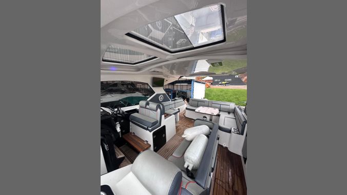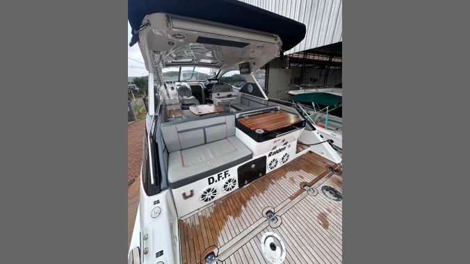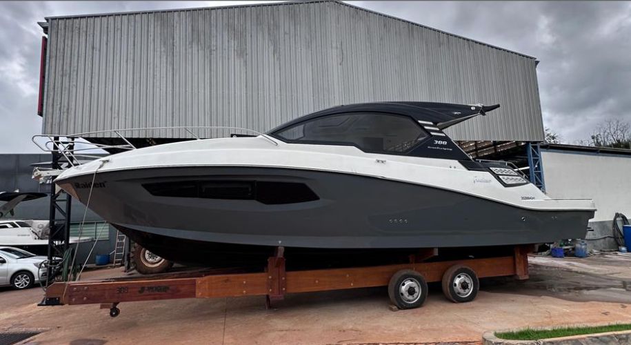 Lancha Focker 388, ano 2024, com parelha de motores Mercruiser 350 Axius com Joystick, e apenas 95 horas de uso, apenas em água doce. Acessórios inclusos: piso em Teka madeira, plataforma (deck beach), televisão, stobag elétrico, luz subaquática, microondas, geladeira, geleira, kit salvatagem, kit enxoval, banqueta de popa, champanheira, GPS 12″ Simrad, sistema de som completo, guincho eletrônico, flap, gerador Onan, ar condicionado, farol elétrico. Acompanha carreta de encalhe trucada. Venha ver de perto!